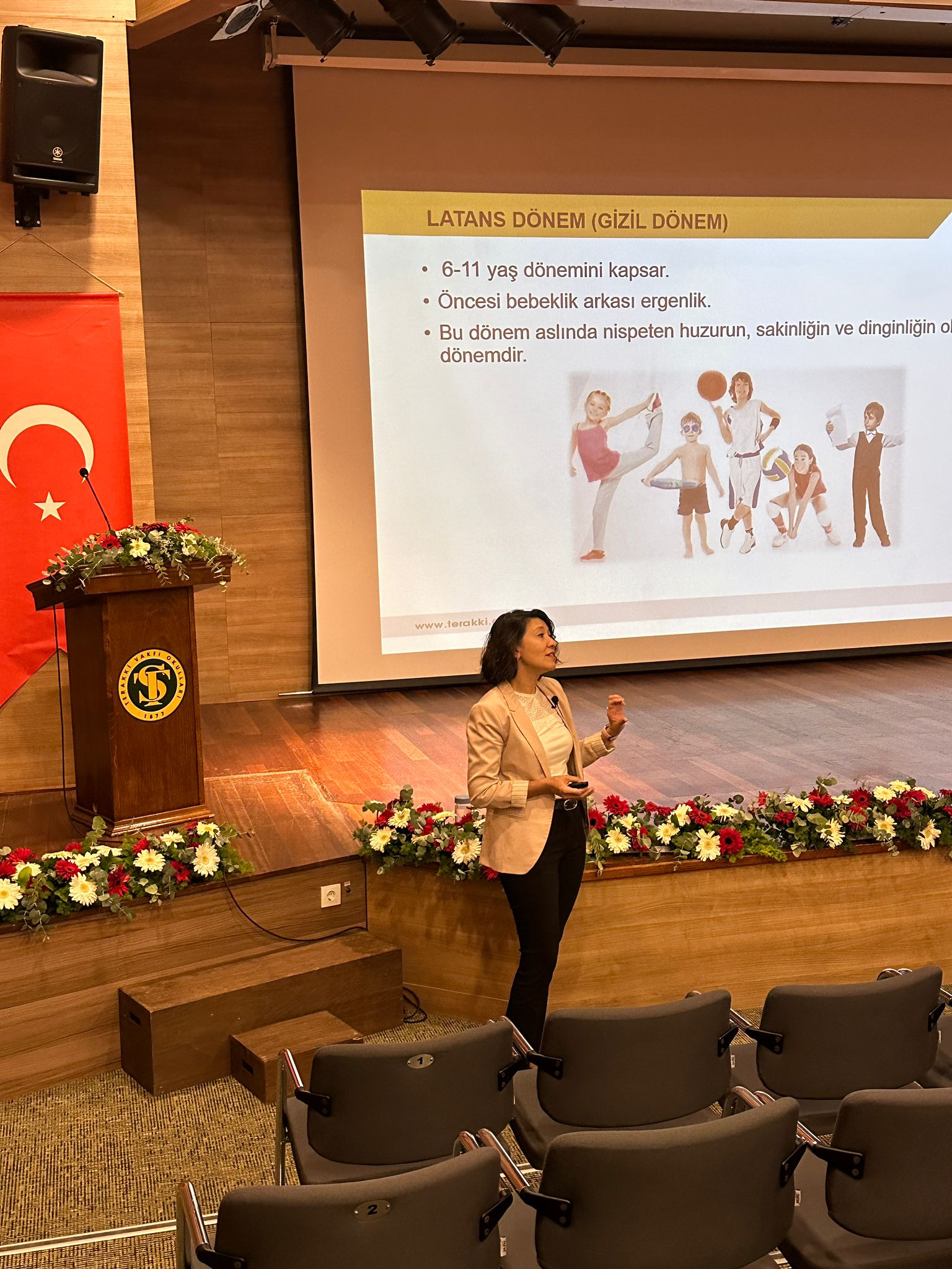Çocuklar büyüme süreçlerinde birçok değişimden geçerler. Bu değişimler heyecan verici olmakla birlikte hem çocuklar hem de anne-babalar için zaman zaman birçok soruyu da beraberinde getirebilmektedir. Uzman Psikolojik Danışman Didem Yıldırım, 31 Ekim 2023 Salı günü Tepeören Kampüsü’nde 2. Ve 3. Sınıf velileri ile Konferans Salonunda bir araya geldi. 2. Ve 3. Sınıf Sürecinde Çocuğun Ruhsallığı konulu seminerde 7-9 yaş arasındaki çocukların gelişim dönemi özellikleri, arkadaşlık ilişkileri, öğrenme süreçlerinin ruhsal dinamikleri, sınırlar ve dönemsel yaşanabilecek korkuları ele alındı. İlkokul 2.ve 3. Sınıf sürecinde çocukların hayatında oyun oynama, oyunlaştırma, arkadaşlar ile ilişkilere odaklanmanın önemine değinildi. Çocukların içsel enerjilerinin büyük kısmını okul ve sosyal etkinliklere yönlendirme eğiliminde olduğu paylaşıldı. Çocukların merak duygusunun ebeveyn, aile ve bakım sağlayandan dış dünyaya yöneldiği ve bunun da öğrenme için büyük bir motivasyon sağladığı, öğrenmenin hızlandığı bir dönem olduğu aktarıldı. Dış dünyayı öğrenme ve kendilerini keşfetme sürecine girilmesi ile birlikte bu dönemin çocuğun ailesel ve toplumsal sınırlarını öğrendiği, kendine dair mahremiyeti kavradığı bir dönem haline geldiği ele alındı. Ayrıca, bu dönemde gelişimsel olarak öğrencilerin yaşayabilecekleri korkular üzerine paylaşımda bulunuldu. Çocuklarının bulundukları yaş dönemine ve yaşadıkları durumlara daha yakından bakabilmelerini sağlayacak bir seminer gerçekleştirildi. Sunum sonunda velilerimizin sorularıyla seminer verimli bir şekilde tamamlandı.