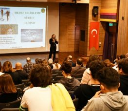 Psikolojik Danışmanımız Müge Kösoğlu; kariyer hedefi belirlemede, kendini tanımanın, meslekler hakkında bilgi edinmenin gerekliliğine değindi. YKS sistemi hakkında teknik bilgiler verdi. Sınava hazırlanma sürecinin başlangıç noktasının sınavın içeriği ve yapısı hakkında bilgilenmek olduğunu söyledi. Puan türlerine göre sorumlu olunan testlerden, bu testlerde derslere göre soru sayılarından bahsederek, yerleştirme puanına Ortaöğretim Başarı Puanı’nın katkısına vurgu yaptı. Öğrencilere ders notlarına da üst düzey önem vermelerinin üniversitede yüksek hedeflere ulaşmak için önemli bir etken olduğunu ifade etti.
